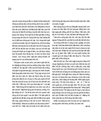 chaáu caén. Thaät may, hoâm nay ñöôïc gaëp em”. Lam gaät maët ngöôøi phuï nöõ ñoû nhö gaác chín: “Em laø Lam, maáy