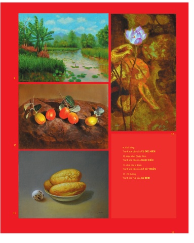 9 12 10 9. Chôø naéng. Tranh sôn daàu cuûa VUÕ ÑÖÙC KIEÂN 10. Muøa nhoùt Chieâu Yeân. Tranh sôn daàu cuûa NGOÏC ÑIEÀN 11. Quaø cuûa A Ñam. Tranh sôn daàu cuûa LEÂ CUØ THUAÀN 12. Voâ thöôøng. Tranh sôn maøi cuûa AN BÌNH 11 12
